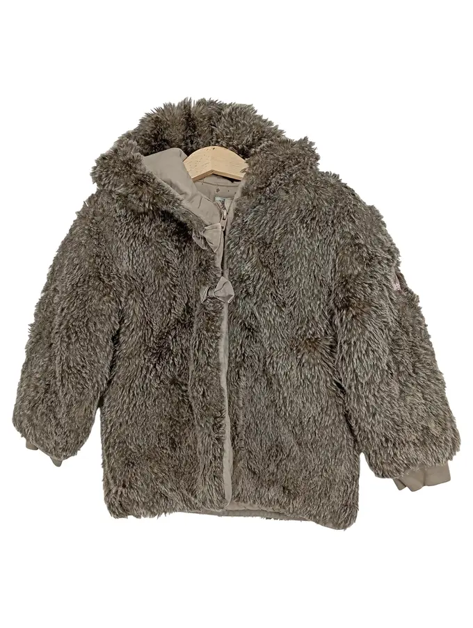 Kinder Kunstfelljacke Gr. 104 Braun Kapuze Warm Freizeit Herbst Winter