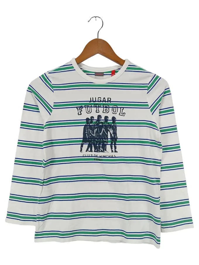 Kinder Langarmshirt Gr. 140/146 Gestreift Fußball Mehrfarbig