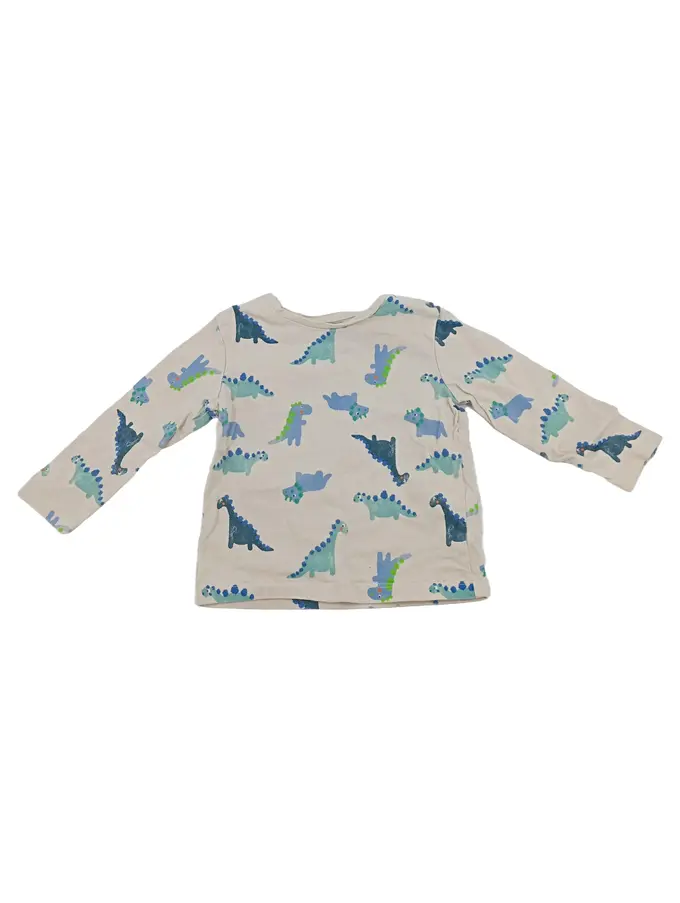 Kinder Langarmshirt Gr. 74 Beige Dinosaurier Motiv Baumwolle Jungen