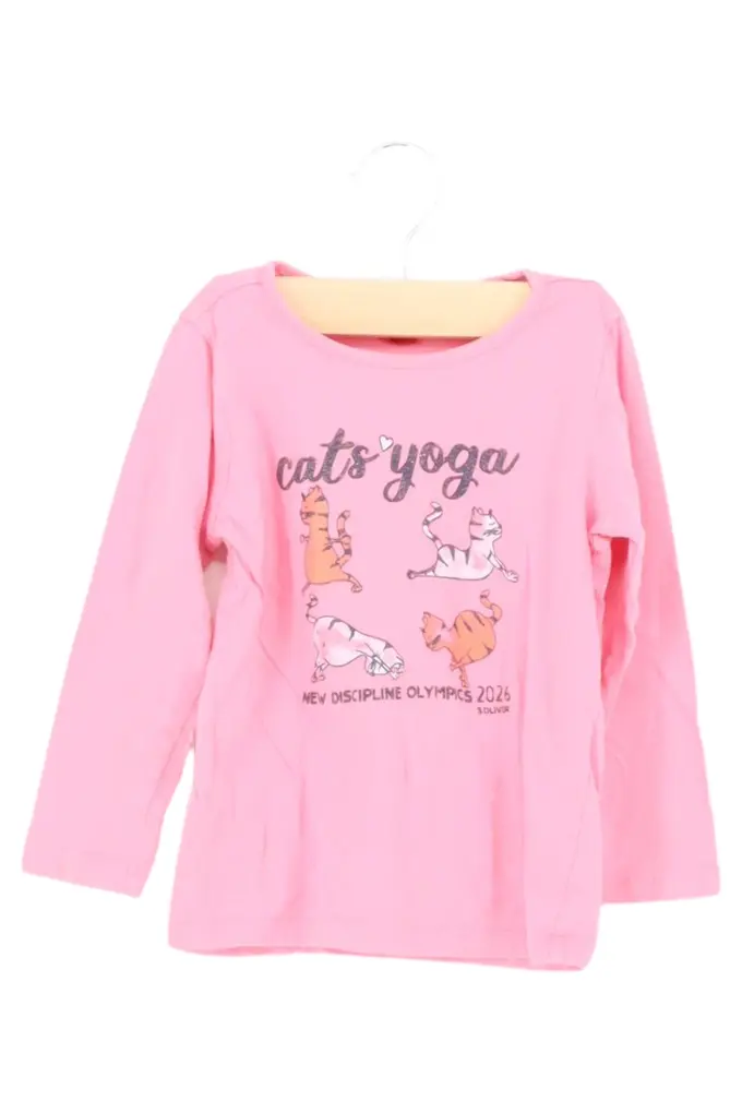 Kinder Langarmshirt Gr. 92 Rosa Katze Yoga Print