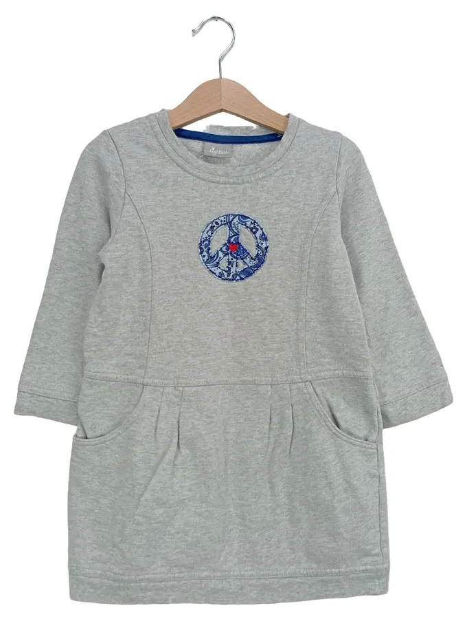Kinder Mädchen Freizeitkleid Gr. 110 Grau Sweatkleid Peace Stickerei
