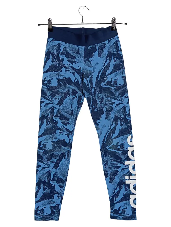 Kinder Mädchen Leggings Gr. 164 Blau Abstrakt Logo Print Sport