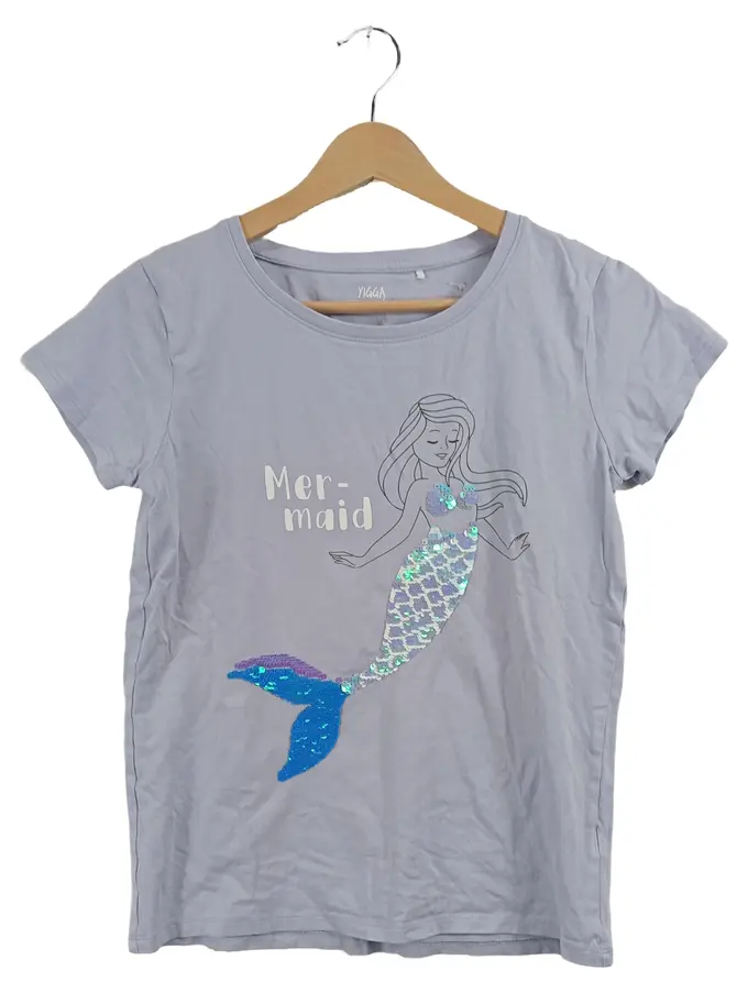 Kinder Mädchen T-Shirt Gr. 158, 164 Lila Meerjungfrau Pailletten Kurzarm