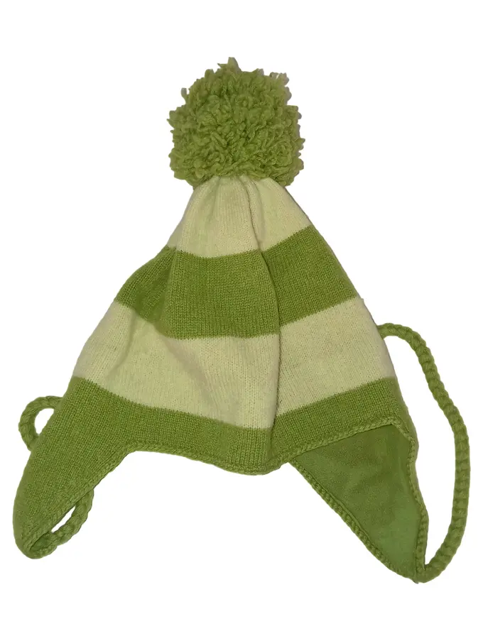 Kinder Mütze Bommelmütze Ohrenklappen Grün Gestreift 100% Wolle