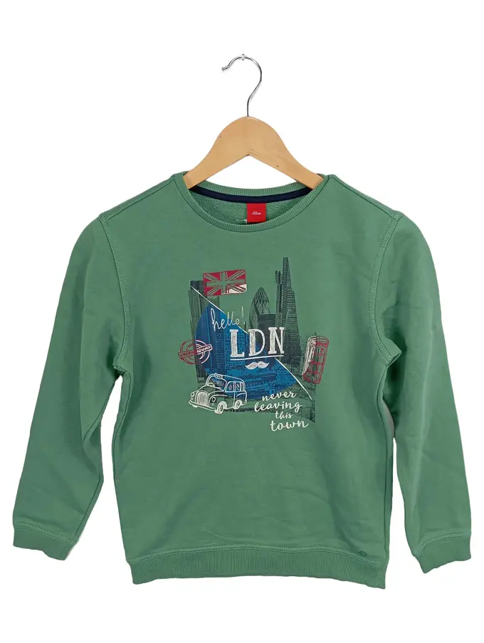 Kinder Pullover Gr. 140 Grün mit London Motiv