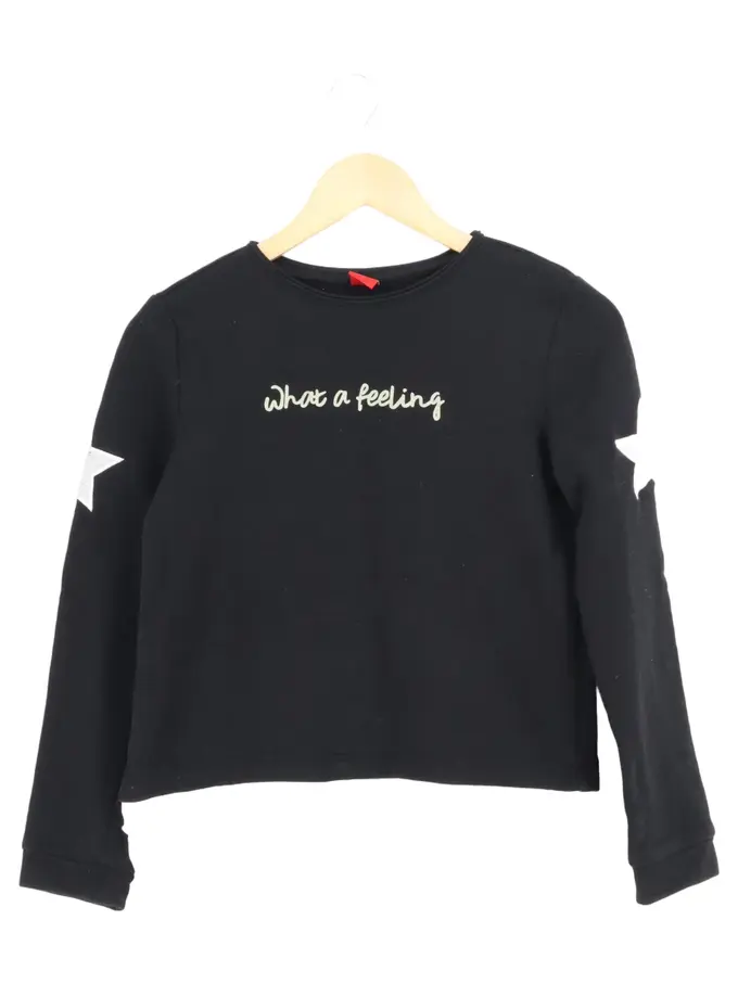 Kinder Pullover Gr. 164 Schwarz Sterne Schriftzug Langarm