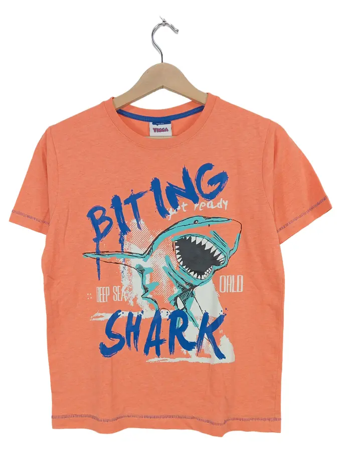Kinder Pullover Kurzarm Orange Hai Tiermotiv Gr. 146/152 Baumwolle