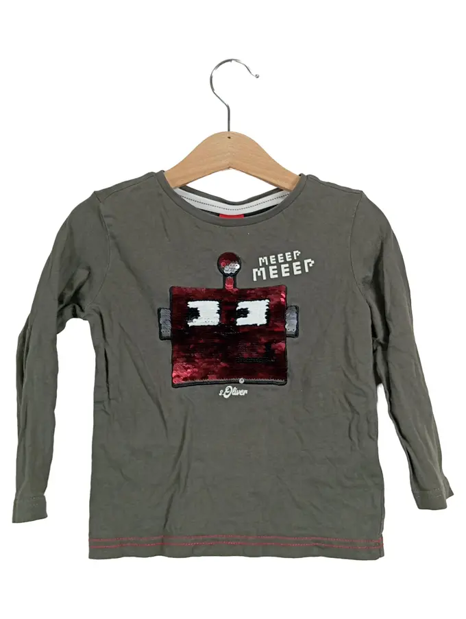 Kinder Pullover Langarm Gr. 98 Oliv Pailletten Tiermotiv