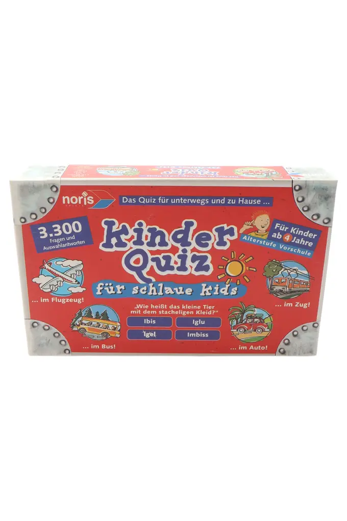 Ein unterhaltsames Quizspiel für Kinder ab 4 Jahren mit 3.300 Fragen und Auswahlantworten. Ideal für unterwegs im Auto, Zug, Bus oder Flugzeug sowie zu Hause. Die Themen stammen aus dem Erfahrungs- und Erlebnisbereich von Vorschulkindern. Ein Erwachsener liest die Fragen vor, das Kind wählt aus vier Antwortmöglichkeiten die richtige aus. Wer zuerst zehn Karten gesammelt hat, gewinnt.