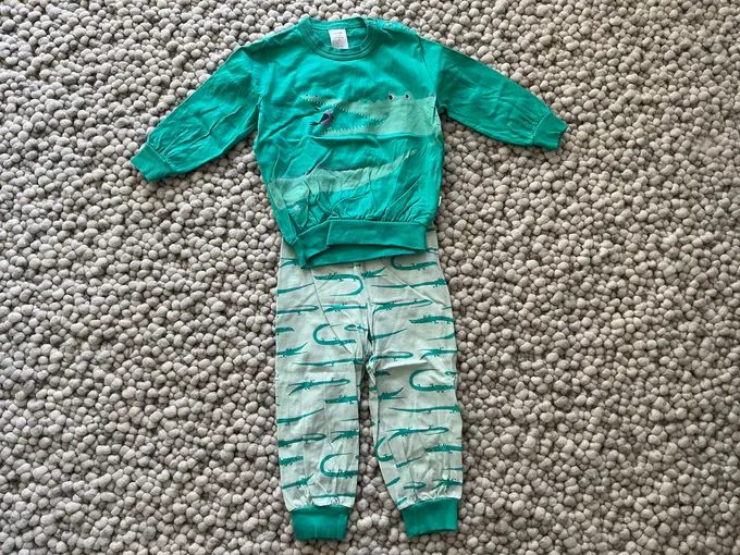 Kinder Schlafanzug Set Shirt Hose Grün Tiermotive Gr. 86 Baumwolle