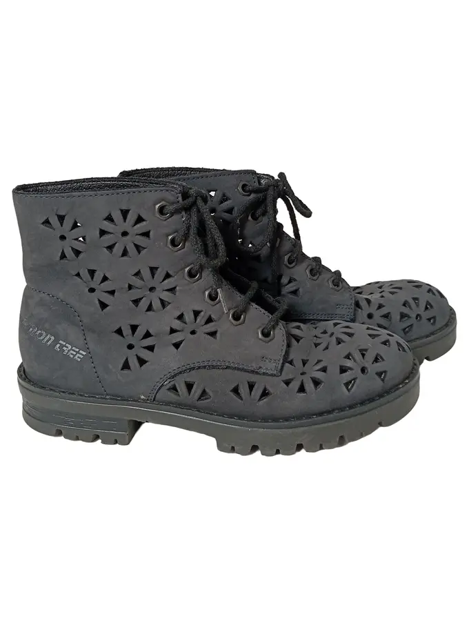 Kinder Schnürschuhe Gr. 33 Schwarz Lochmuster Boots Streetwear