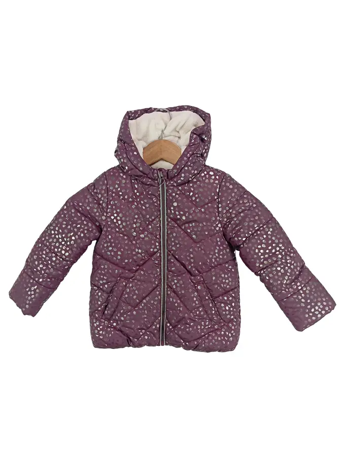 Kinder Steppjacke Mädchen Gr. 104 Lila Punkte Kapuze