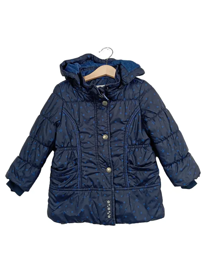 Kinder Steppjacke Mädchen Gr. 98 Blau Sterne Kapuze Winterjacke