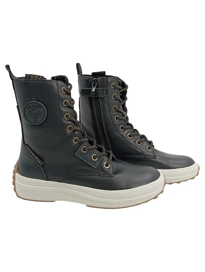 Kinder Stiefel Schnürstiefel Leder Schwarz Gr. 33