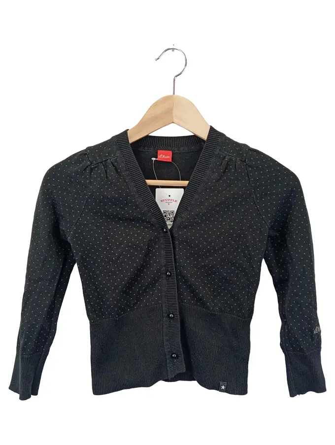 Kinder Strickjacke Gr. 128 Schwarz gepunktet Langarm