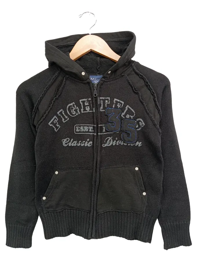 Kapuze • Reißverschluss • Rippstrick • Schriftzug