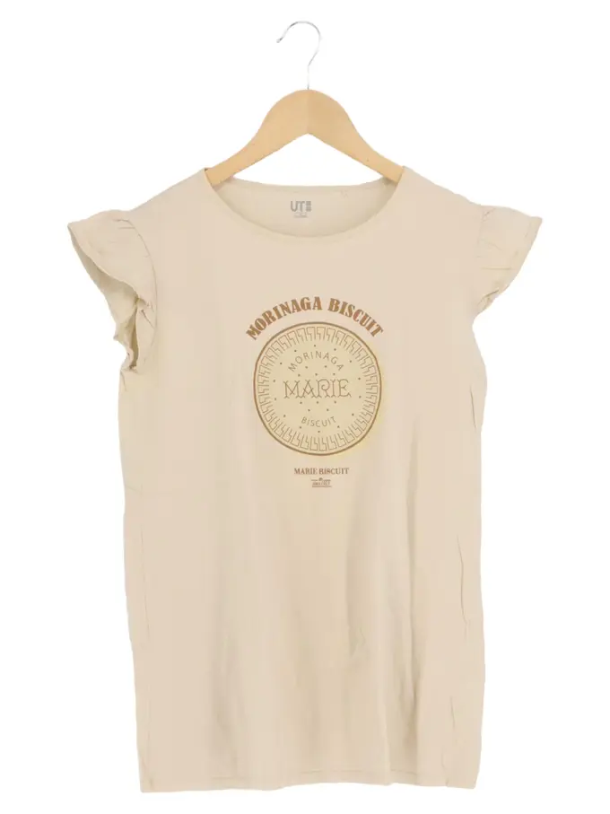 Kinder T-Shirt Beige Gr. 158 Casual Rüschen Biscuit Print