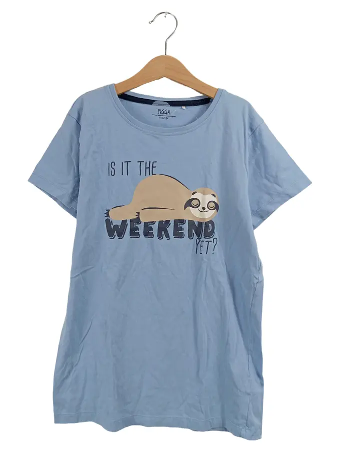 Kinder T-Shirt Blau Gr. 158 Faultier Print Is it the weekend yet Casual
