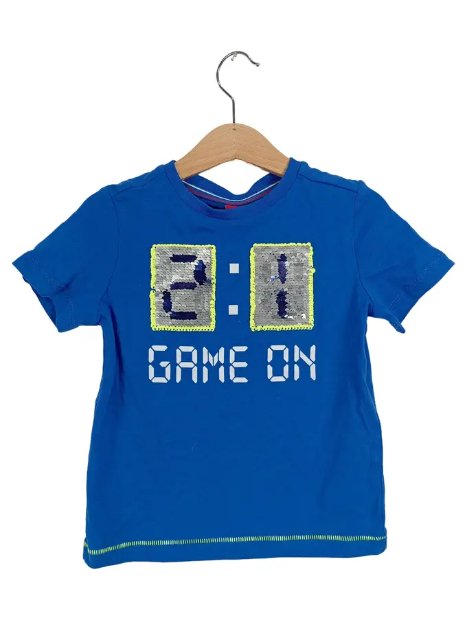 Kinder T-Shirt Game On Wendepailletten Blau Gr. 92/98