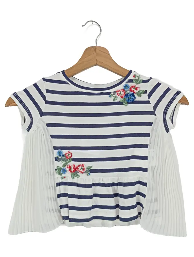 Kinder T-Shirt Gr. 104/110 Gestreift Maritim Blumen Stickerei