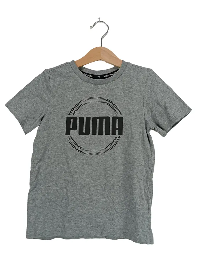 Kinder T-Shirt Gr. 116 Grau Logo Print Sportshirt Jungen