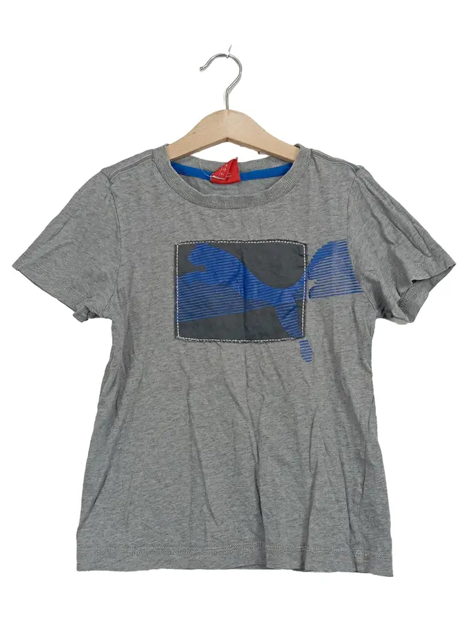 Kinder T-Shirt Gr. 128 Grau Grafikprint Kurzarm Jungen