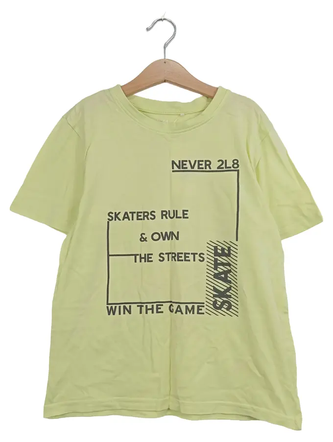 Kinder T-Shirt Gr. 140 Grün Skateboard-Print Schriftzug Casual