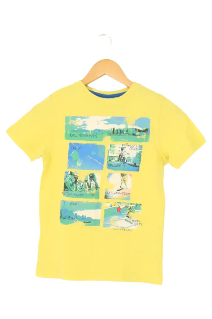 Kinder T-Shirt Gr. 152 Gelb Grafisch Kurzarm