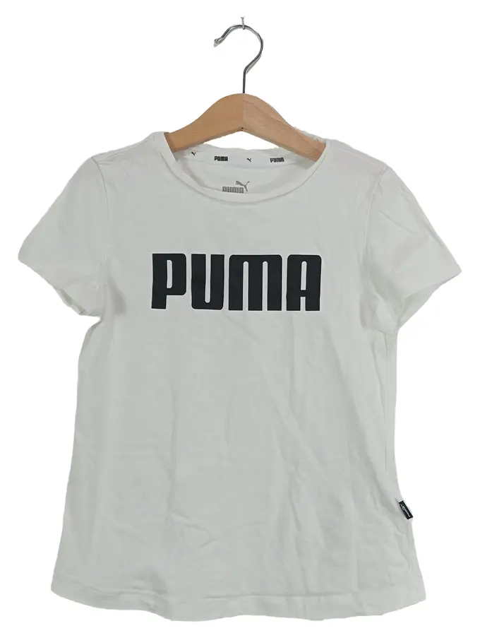 Kinder T-Shirt Logo Print Weiß Gr. 128 Baumwolle Sportlich