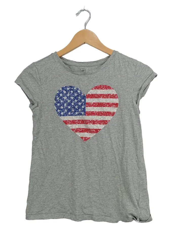 Kinder T-Shirt Mädchen Kurzarm Baumwolle Pailletten Meliert Grau 164