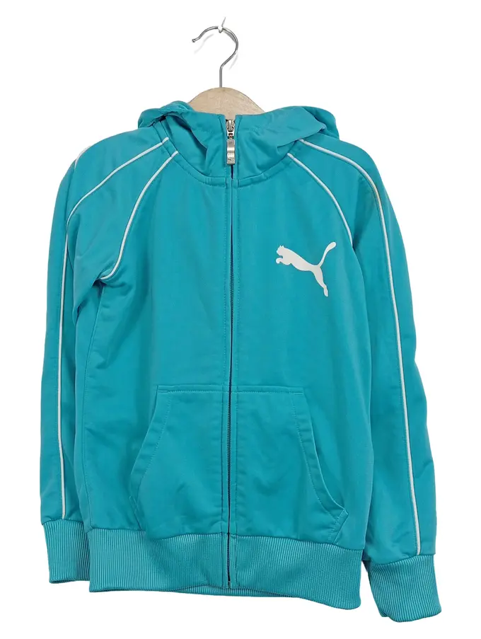 Kinder Trainingsjacke Gr. 128 Türkis Kapuze Sport Polyester Logo