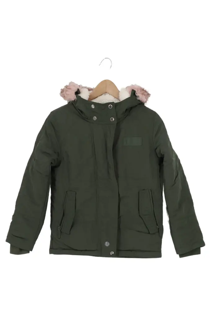 Kinder Winterjacke Gr. 152 Grün Casual Outdoor Kapuze Fellbesatz
