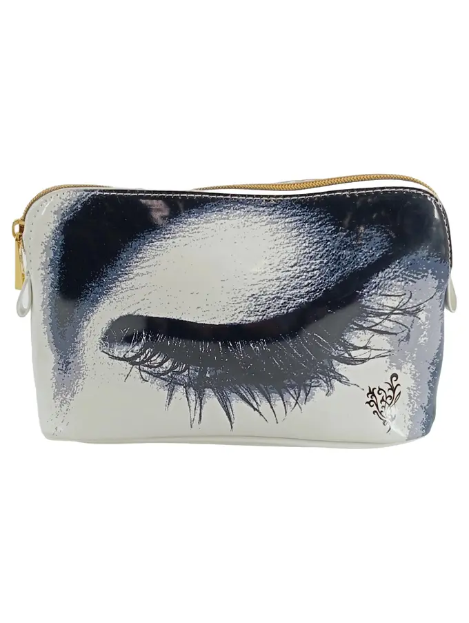 Kosmetiktasche Elegant Weiß mit Augen-Print Make-up Tasche Damen
