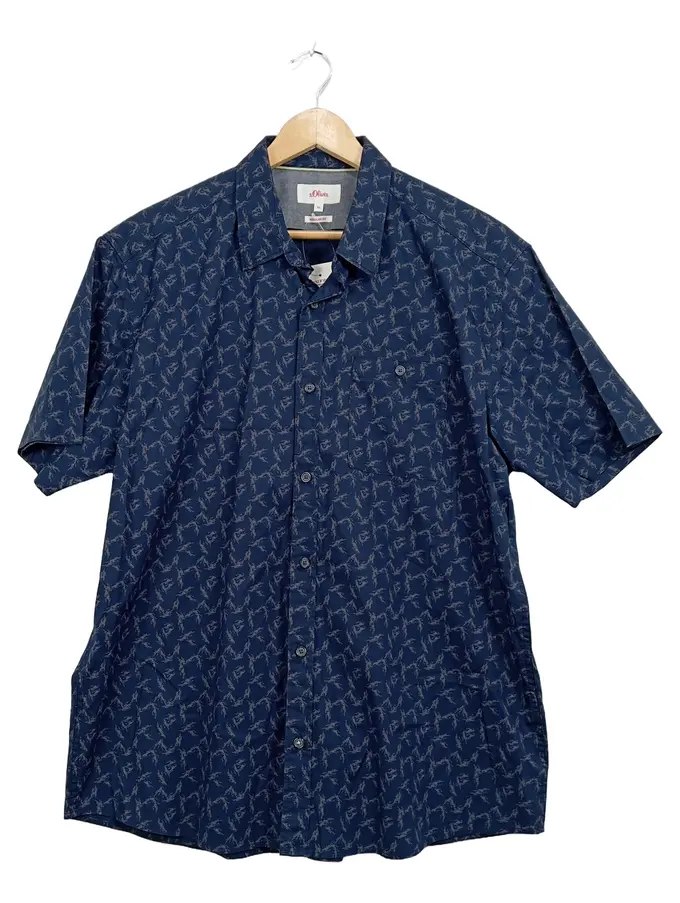 Kurzarmhemd Herren XL Blau Grafisch Regular Fit Baumwolle