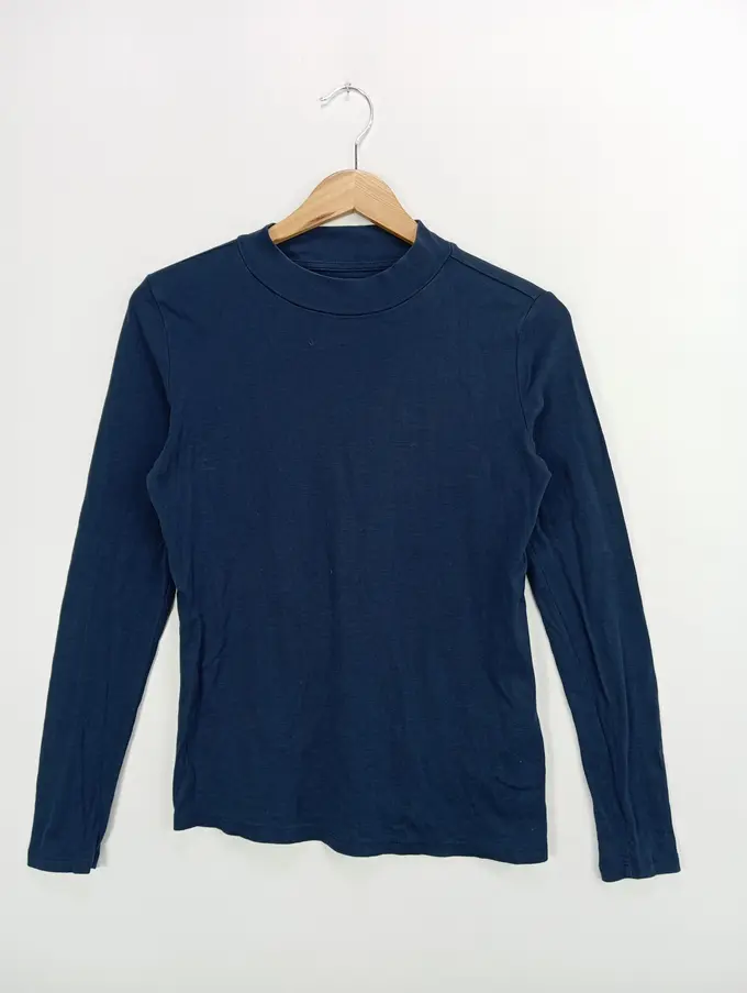 Langarmshirt Damen 38/M Blau Basic Casual Baumwolle