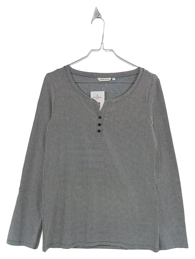 Langarmshirt Damen Gr. 38/M Blau Gestreift Knopfleiste Casual