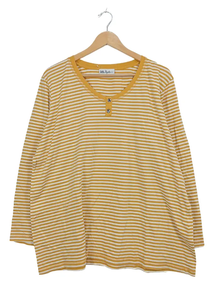 Langarmshirt Damen Gr. 50/52 Gelb Weiß Gestreift Baumwolle