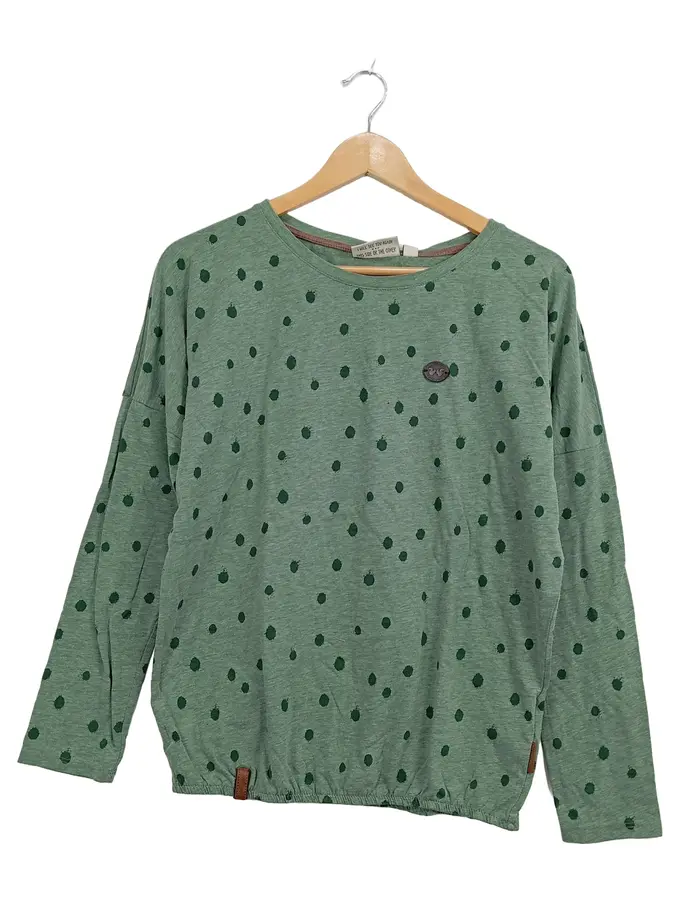 Langarmshirt Damen Gr. M Grün Punkte Casual Brave New Word