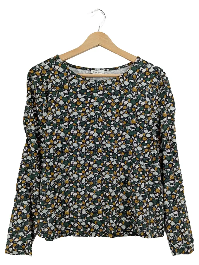 Langarmshirt Damen Gr. S Blumenmuster Grün Floral
