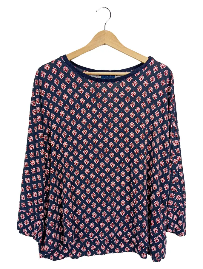 Langarmshirt Damen Shirt Tunika Blau Rot Muster Viskose Gr. 36 S