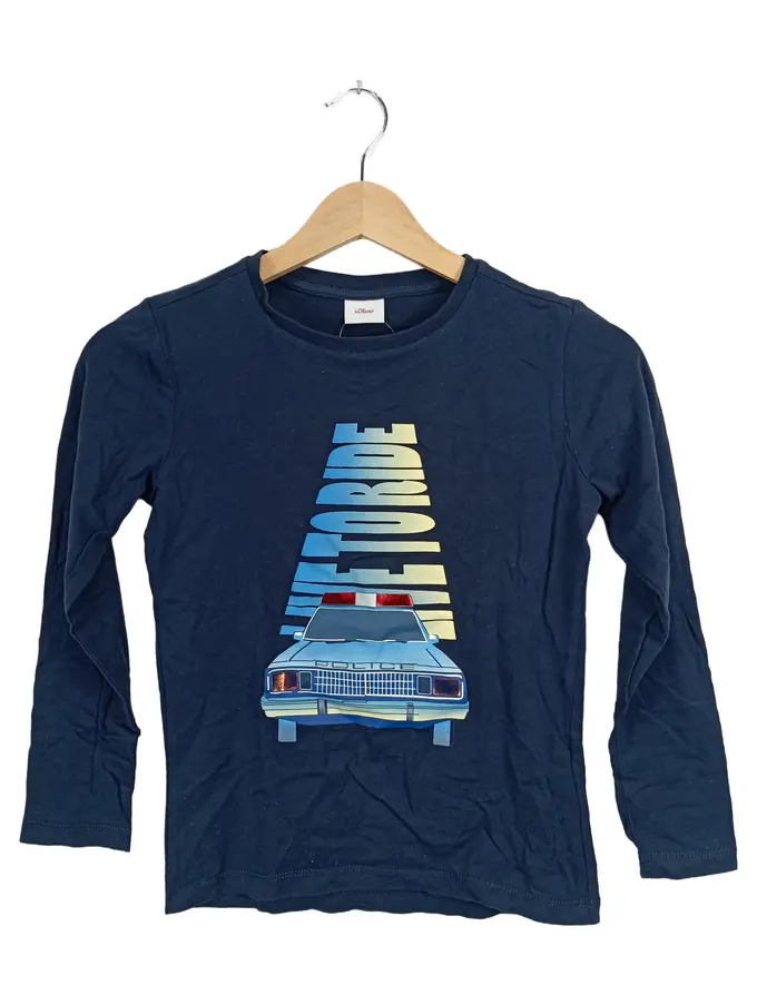 Langarmshirt Jungen 128 Blau Fahrzeuge Logo Print Baumwolle Freizeit