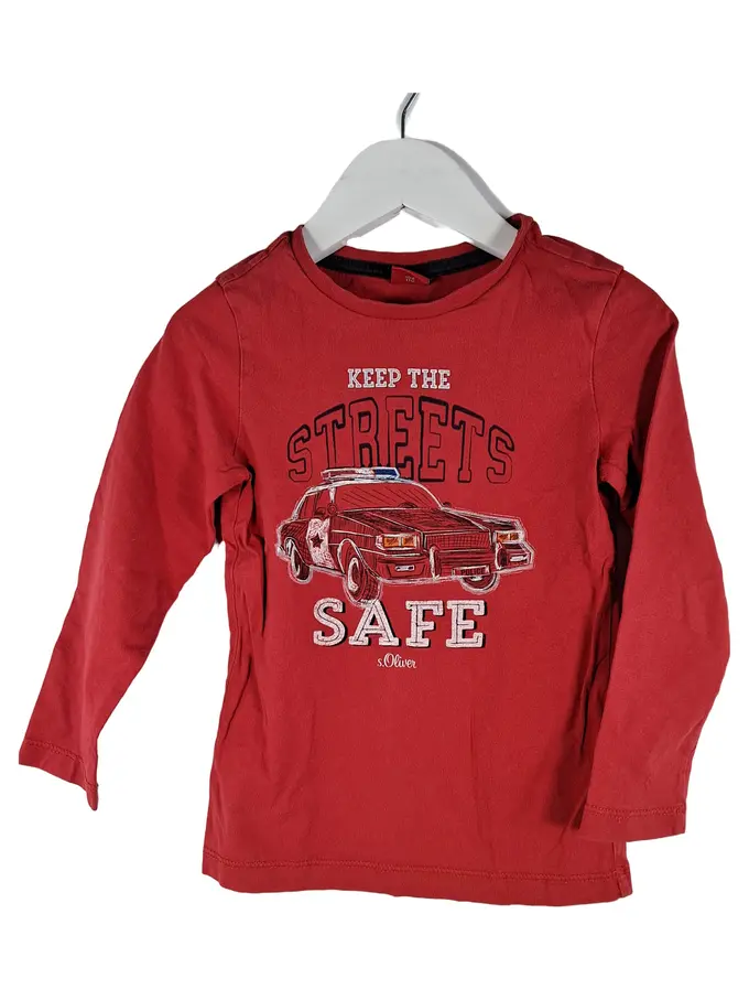 Langarmshirt Jungen Gr. 104 Rot Polizeiauto Print Baumwolle