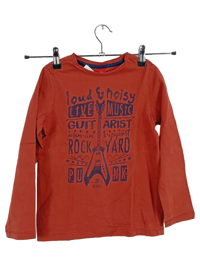 Langarmshirt Jungen Gr. 116/122 Orange Rock Gitarre Print