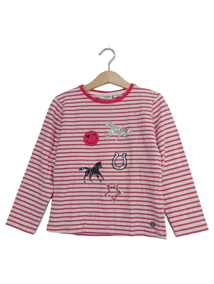 Langarmshirt Mädchen Gr. 116/122 Rosa Casual Pferde Sterne