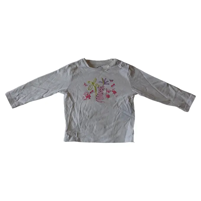 Langarmshirt Mädchen Gr. 74 Weiß Casual mit Hase & Blumen