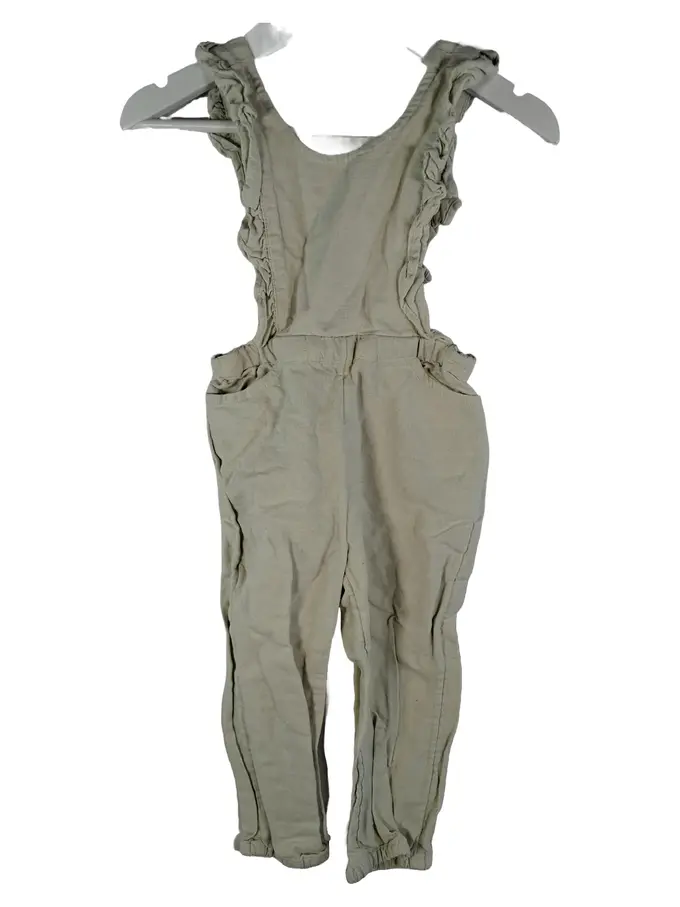 Latzhose Mädchen Gr. 86 Beige Rüschen Leinen Baumwolle