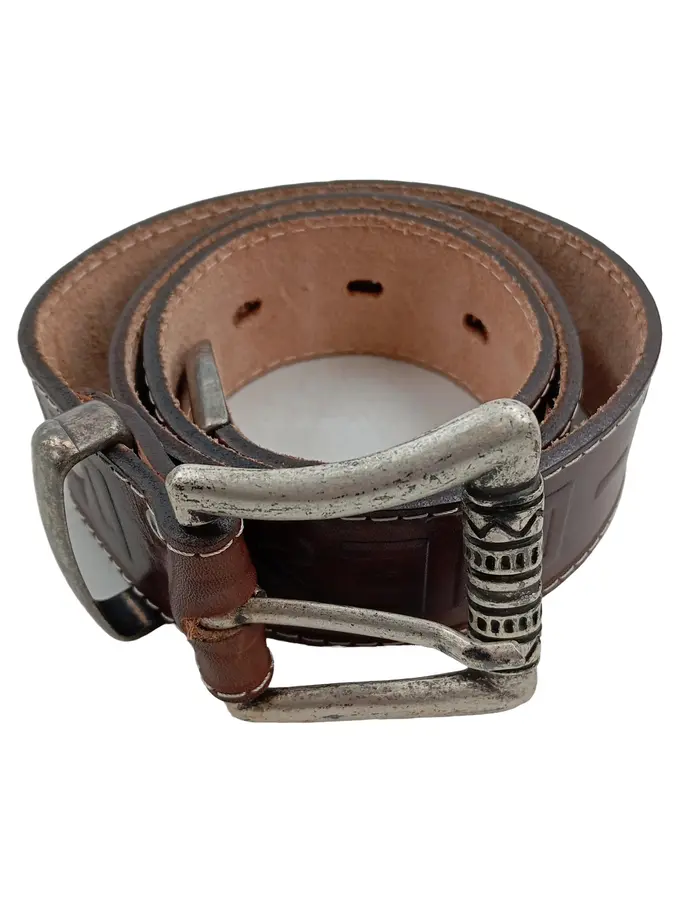 Ledergürtel Herren Braun Gr. 80 Vintage Logo Prägung Silber Schnalle