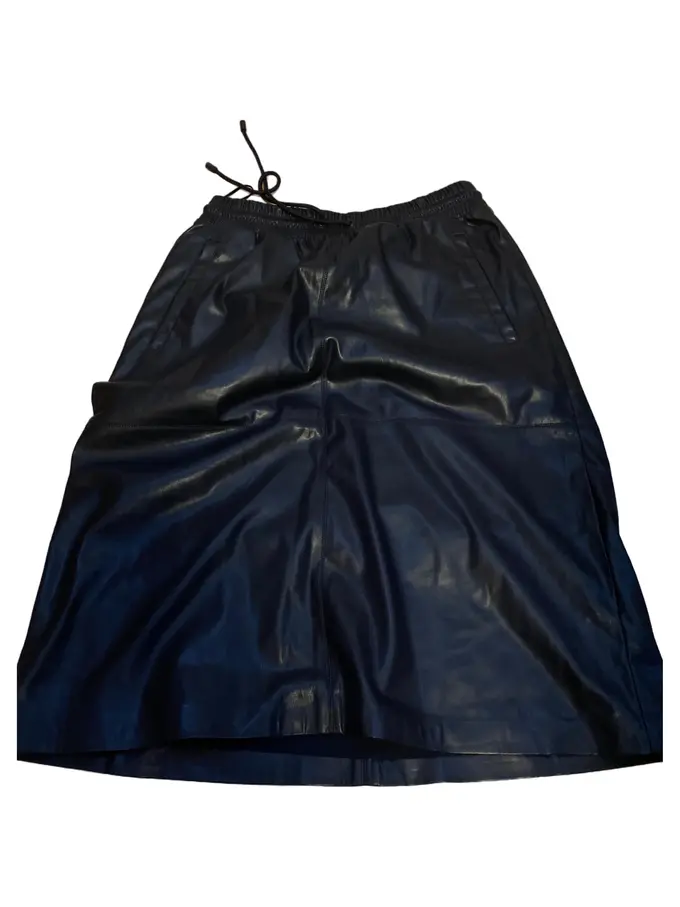 Lederrock Damen Gr. 34 XS Schwarz Midirock Kunstleder Raffungen