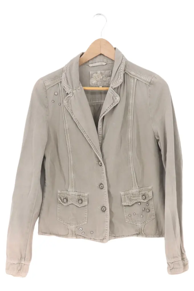 Leichte Jacke Damen Gr. Einheitsgröße Grau Casual Baumwolle Nieten