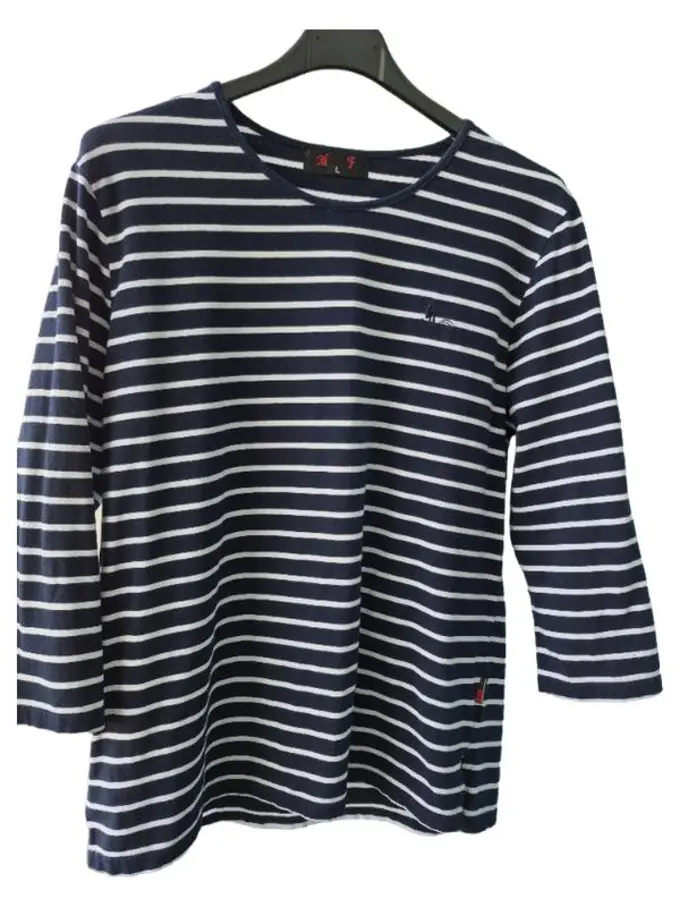 M F Damen Langarmshirt Gr. L Blau Weiß Gestreift Maritim Baumwolle